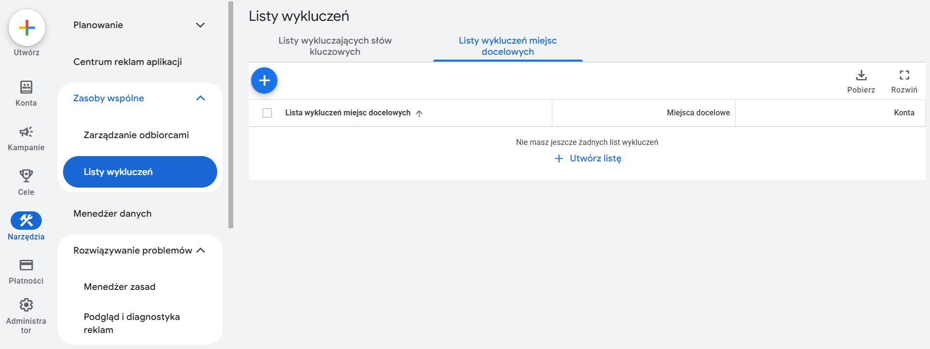 Jako ekspert zalecam też od razu wprowadzić wykluczenia na poziomie całego konta, co oszczędzi Ci mnóstwo pieniędzy w dłuższej perspektywie.