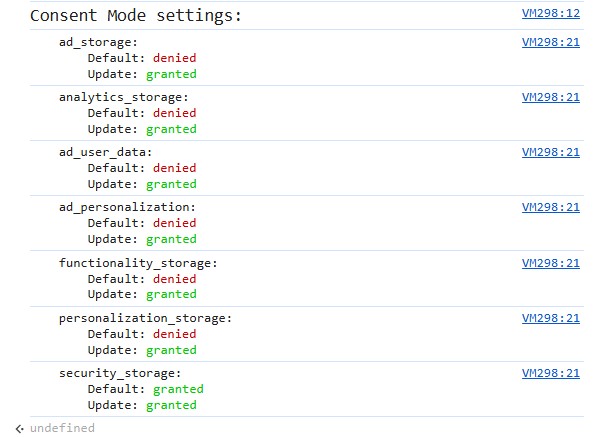 Ten parametr to najprostsza forma komunikatu, znana już z wersji Content Mode v1. Daje Google znać, na co użytkownik się zgodził, a co zablokował. Możesz to traktować jak zestaw przełączników – włączone lub wyłączone. Przykładowy kod mógłby wyglądać tak: