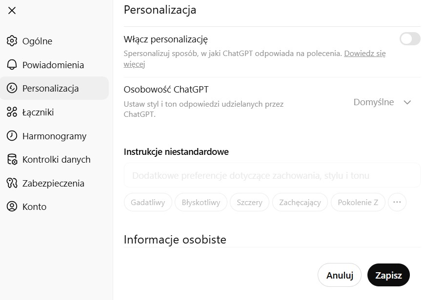 Warto podkreślić, że personalizacja to nie tylko pamięć o poprzednich rozmowach, ale przede wszystkim możliwość ręcznego określenia konkretnych wymagań co do odpowiedzi. To sprawia, że każde kolejne użycie ChatGPT jest bardziej spójne, dopasowane do naszych potrzeb i wymaga mniej ręcznej ingerencji.