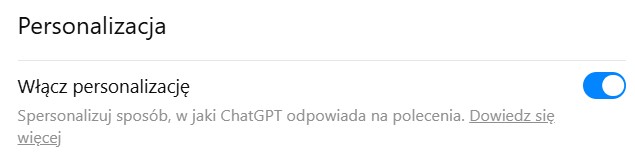 Personalizacja ChatGPT polega na tym, że możemy skonfigurować narzędzie tak, aby zapamiętywało ważne zalecenia w sposób globalny – czyli w każdym czacie, jaki z nim rozpoczniemy. Dzięki temu nie musimy za każdym razem powtarzać tych samych próśb czy instrukcji.