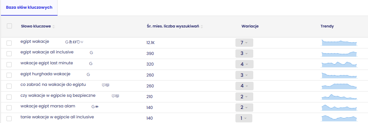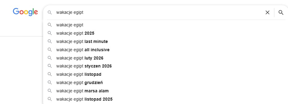 Proponowane frazy kluczowe z wyszukiwarki Google