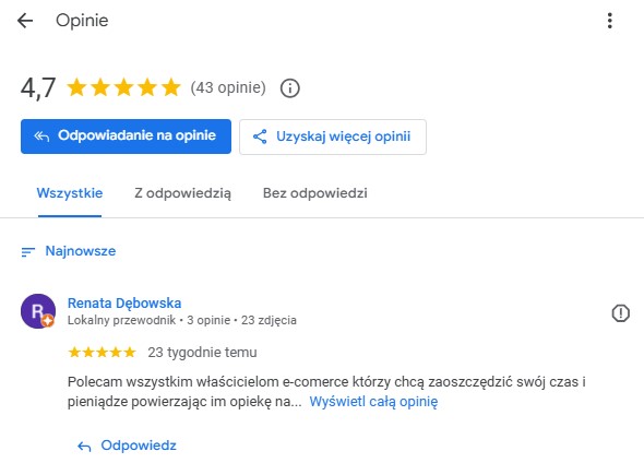 - Opinie z wizytówki Google – wizytówka Google to obecnie jedno z najbardziej wiarygodnych źródeł opinii o firmach. Sprawdź, jakie opinie mają inni klienci na temat agencji SEO, którą rozważasz.