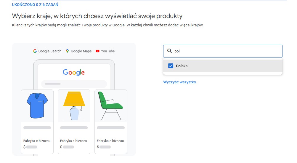 W tym kroku określamy, w jakich krajach chcemy zapewnić widoczność naszych produktów.
