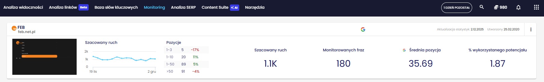 - Profesjonalne narzędzia SEO – automatyczny monitoring pozycji w Google