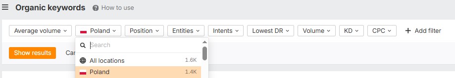 W Ahrefs proces wygląda podobnie, choć ścieżka jest nieco inna.