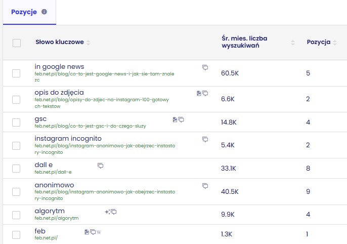 - Najdokładniejsze darmowe dane o pozycjach fraz znajdziesz w Google Search Console, które pokazuje realne wyświetlenia użytkowników.
