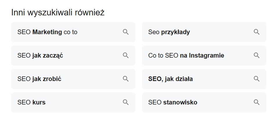 To prosta, ale skuteczna metoda. Wpisuję początek frazy w wyszukiwarkę i sprawdzam, co podpowiada autouzupełnianie. Analizuję też sekcję "Więcej pytań" (People also ask) oraz sekcję "Inni wyszukiwali również" na dole strony wyników.