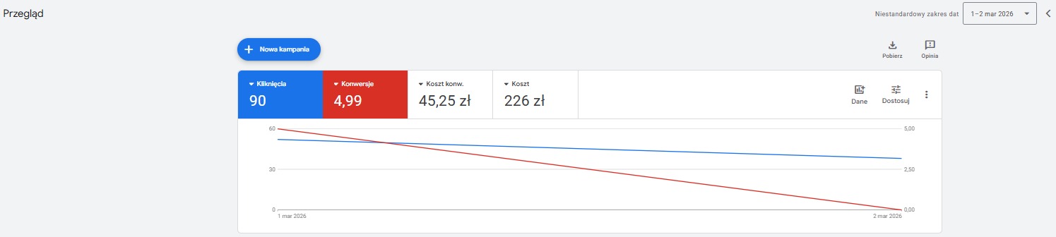 Niski miesięczny wolumen konwersji niebezpiecznie wydłuża wstępną fazę uczenia. Obserwuję w takich sytuacjach zwiększoną niestabilność kosztu pozyskania klienta (CPA) oraz ogromne wahania zwrotu z nakładów na reklamę (ROAS).