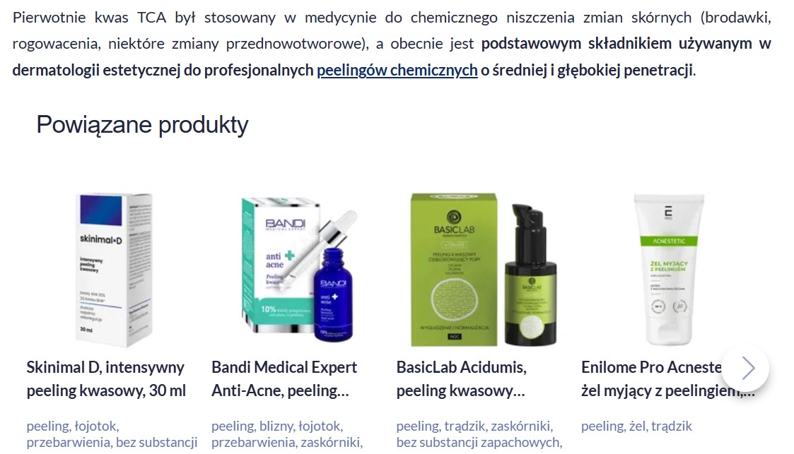 Przykładowe wdrożenie: https://www.doz.pl/czytelnia/a18545-Kwas_TCA._Wlasciwosci_i_zastosowanie_kwasu_trojchlorooctowego_w_zabiegach_kosmetycznych