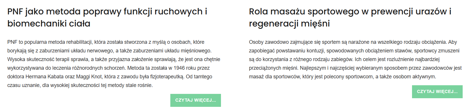 - Lokalne frazy kluczowe – optymalizacja treści pod kątem fraz typu “fizjoterapeuta [nazwa miasta]" lub “rehabilitacja [dzielnica]" skutecznie generuje ruch organiczny.