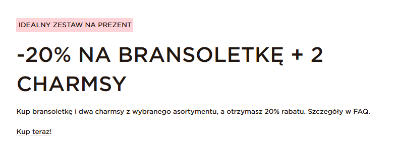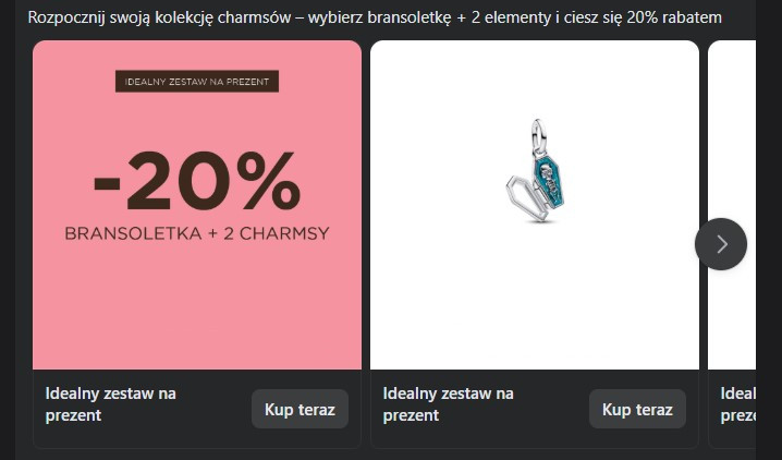 Każdy charms ma też emocjonalny wymiar – symbolizuje osobę, wspomnienie lub ważne wydarzenie, dlatego idealnie sprawdza się jako prezent. To podejście jest bardzo skuteczne i stwarza bazę do atrakcyjnych, ale już nieco bardziej standardowych promocji.