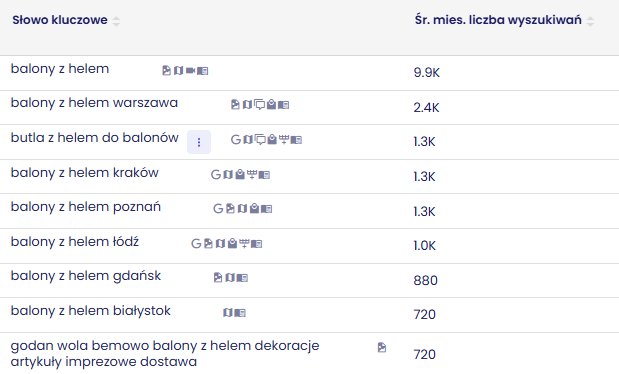 Przykładem mogą być precyzyjne zapytania typu “godan wola bemowo balony z helem dekoracje artykuły imprezowe dostawa” czy “box prezentowy na 18 dla dziewczyny”. Tak nasycony merytorycznie serwis nie tylko lepiej się pozycjonuje, ale również skuteczniej przeprowadza klienta przez ścieżkę zakupową.
