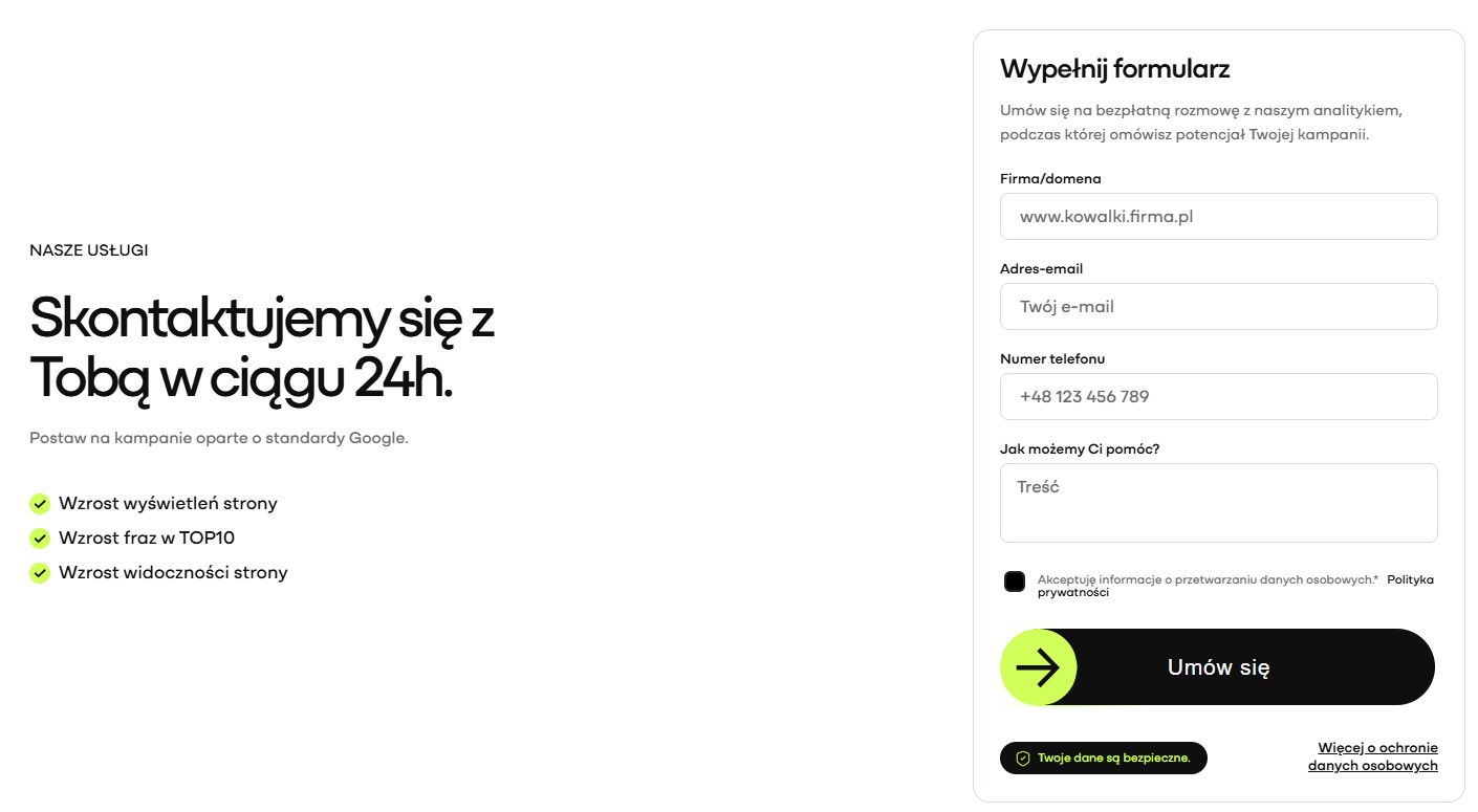 Jeśli celem jest generowanie leadów, formularz jest nieodzowny. Pamiętaj: