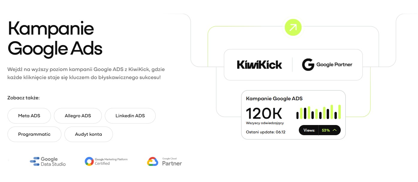 Przykładowy fragment landing page, źródło: https://kiwikick.pl/